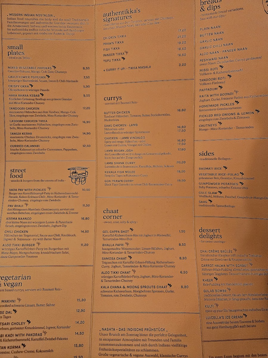 Welcome to Authentikka Schanze, a gem nestled in Hamburg's Schäferkampsallee, celebrated for its true-to-taste Indian cuisine. This restaurant artfully brings authentic Indian flavors to life, crafting a menu that caters to both vegetarian and non-vegetarian diners. Guests rave about the generous portions and the warmth of the atmosphere, making it an ideal location for casual meals or special gatherings.